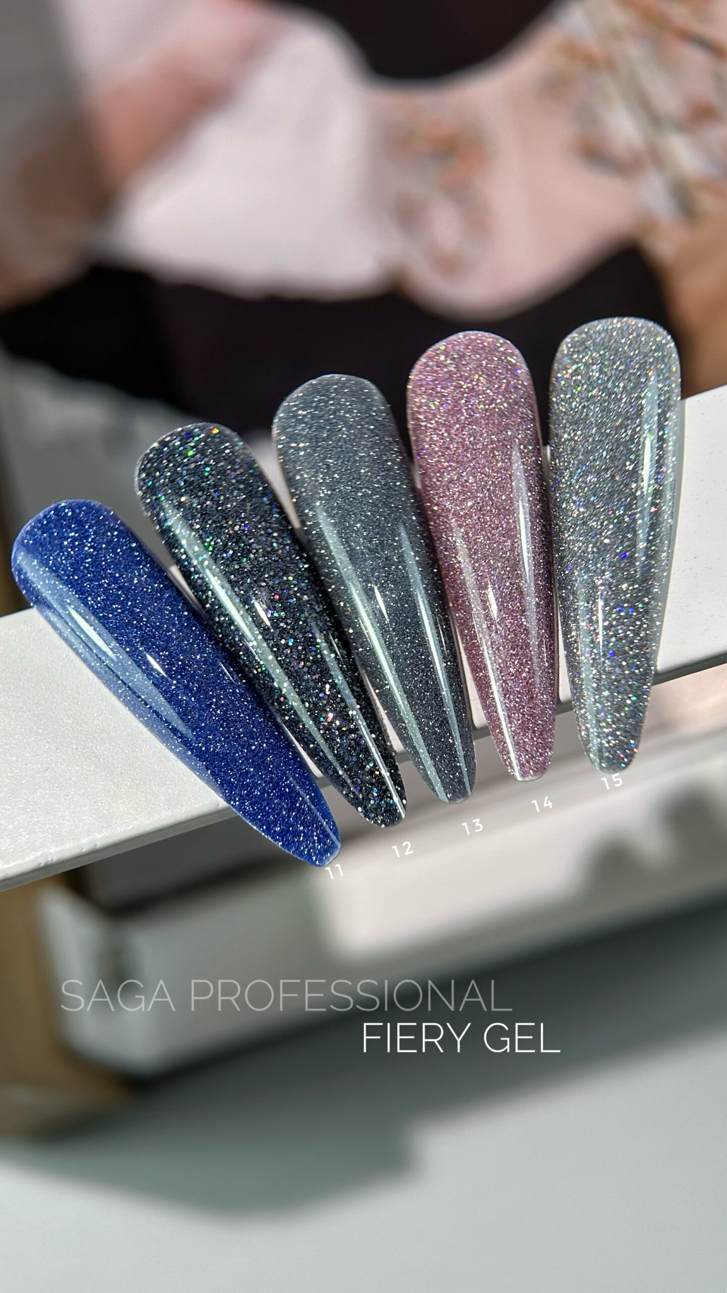 SAGA Professional Fiery Gel – to gęsty odblaskowy lakier hybrydowy z shimmerem i holograficznymi płatkami. Blask, który olśniewa, zachwyca i przypomina diamentowy połysk to właśnie lakiery hybrydowe Fiery Gel!