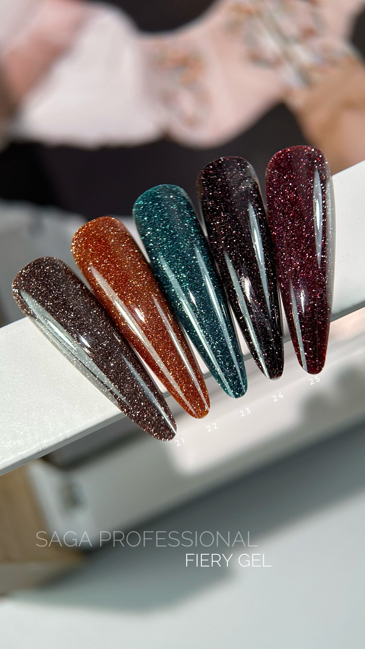 SAGA Professional Fiery Gel – to gęsty odblaskowy lakier hybrydowy z shimmerem i holograficznymi płatkami. Blask, który olśniewa, zachwyca i przypomina diamentowy połysk to właśnie lakiery hybrydowe Fiery Gel!