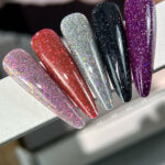 Błyszczący shimmer i holograficzne płatki są ich głównym dekoracyjnym składnikiem, nadającym niezwykły efekt wizualny. Pod wpływem sztucznego światła drobinki odbijają promienie, tworząc efekt odbicia, co tworzy iluzję luksusowego diamentowego blasku.