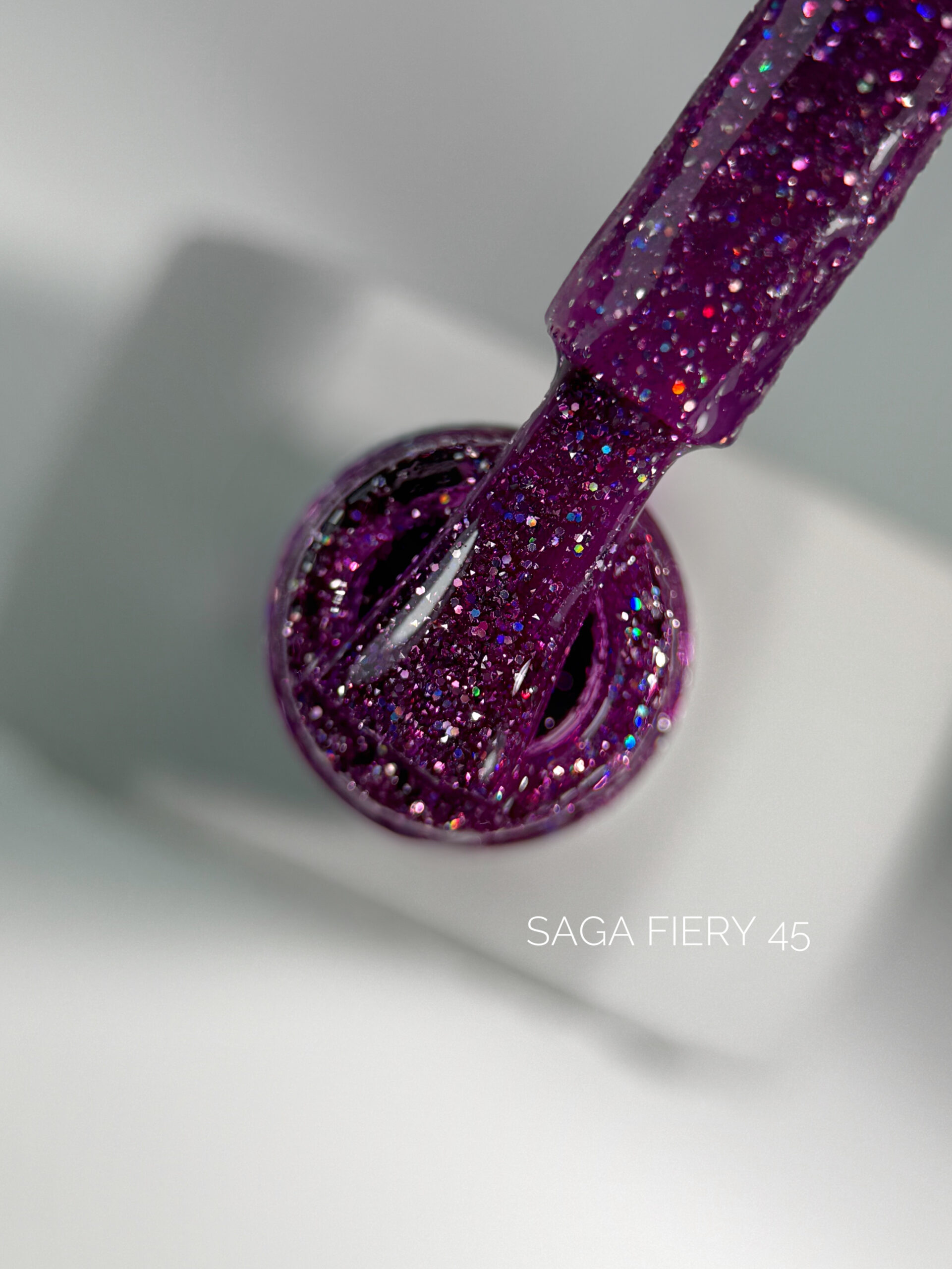 SAGA Professional Fiery Gel – to gęsty odblaskowy lakier hybrydowy z shimmerem i holograficznymi płatkami. Blask, który olśniewa, zachwyca i przypomina diamentowy połysk to właśnie lakiery hybrydowe Fiery Gel!