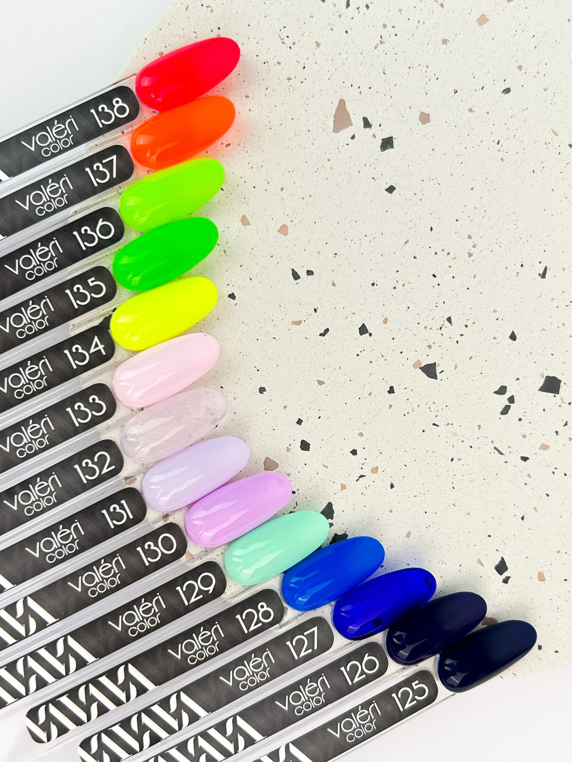 Lakiery hybrydowe Valeri są bardzo napigmentowane i nakładają się w jedną warstwe, samopoziomują się, są odporne na ścieranie, łatwe w aplikacji.
