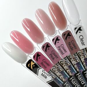 Delikatne, mleczno-pastelowe kolory żeli Hard Gel Color doskonale łączą się ze sobą, przez co bardzo dobrze się spisują przy wykonaniu cieniowania.