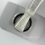 SAGA Top Crush – to wyjątkowe topy dekoracyjne do profesjonalnego użytku w branży paznokciowej. Zawiera piasek hologramowy i cząstki odblaskowe. Ma przyjemną konsystencję i równomiernie rozprowadza się na płytce paznokcia. Efekt odbicia światła występuje, gdy sztuczne światło pada na paznokcie. W świetle dziennym lub słonecznym top nadaje manicure niesamowitego połysku.