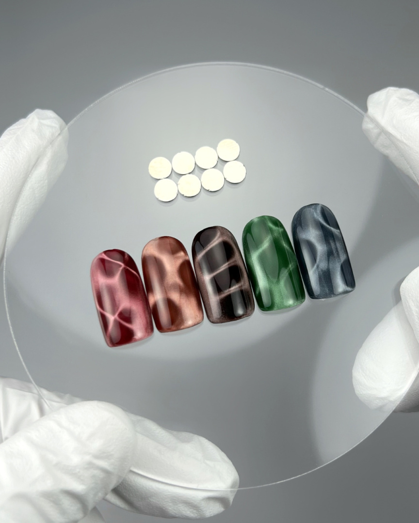 NAILSOFTHEDAY kolekcja magnesów neodymowych — twórz zachwycające refleksy na lakierach hybrydowych dzięki ultramocnym magnesom neodymowym! Kompaktowy design umożliwia łatwe formowanie unikalnych wzorów z efektem „Kociego oka”. Dla jeszcze bardziej spektakularnych zdobień łącz kilka magnesów w różnych pozycjach i kreuj własne arcydzieła!